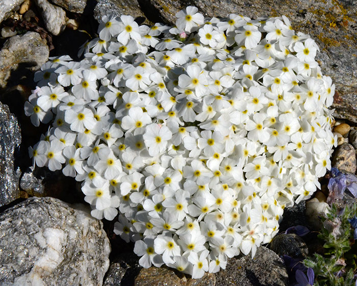 Androsace muscoidea - If you are lucky, this plant blooms amply. I cultivate it in sandy substrate in a shady trough.