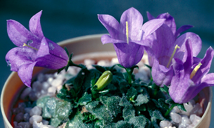 Campanula morettiana – This choice species is found in limestone cliffs in the Dolomites. Not easy to grow successfully in the open garden. Best in the alpine house.