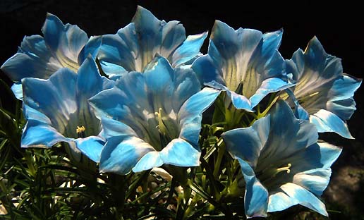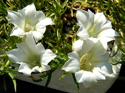 Gentiana sino-ornata hybrid - numerous hybrids of these autumn-flowering Asian gentians exist in cultivation. They never enjoyed my lime soil nor our hot, dry climate, especially the summers, for a long time enough to flower with me. Anyhow, I have now, after twenty years of trying, discovered a method to induce them to stay with me: ice cream boxes.