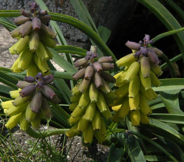 Muscari macrocarpum - This beautiful Grape hyacinth is found in the Aegean islands and Crete, growing on limestone cliffs. In my bulb frame it presents no difficulties.