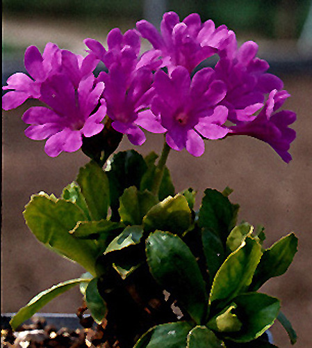 Primula x heerii (P. hirsuta x P. integrifolia). A not very commonly occurring hybrid from the Bernina (Switzerland).