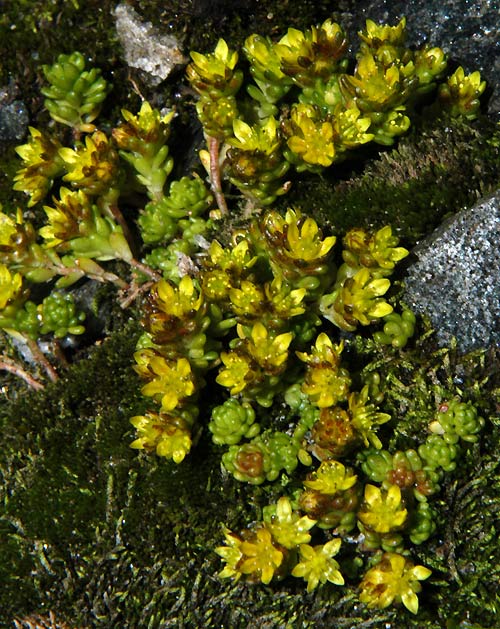 Sedum atratum subsp. carinthiacum - Carinthia ( Austria). This is a stocky, dwarf annual, with the flowers sitting tightly at the tip of the stem. Ssp. carinthiacum with leaves and petals only faintly tinged with red. This species is found on mountains from Pyrenees to the Carpathians, Greece.