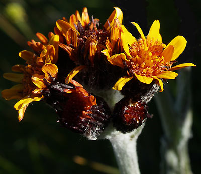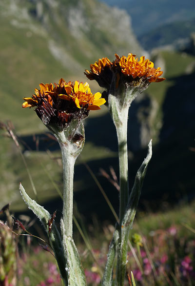 Tephroseris integrifolia subsp. capitata -(Senecio capitata) Maritimes Alps ( Italy). This species is very variable in stature, leaf shape and hairiness and ray floret colour. Most of Europe in scattered localities