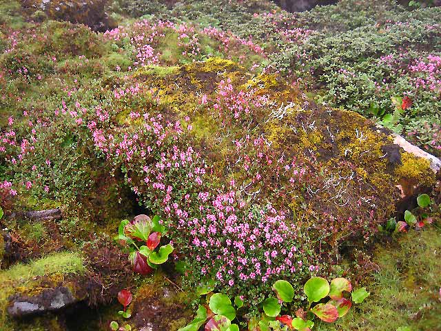 Bistorta vacciniifolia - Makalu National Park - At the end of the summer these flowers carpeting massive rocky outcrops.