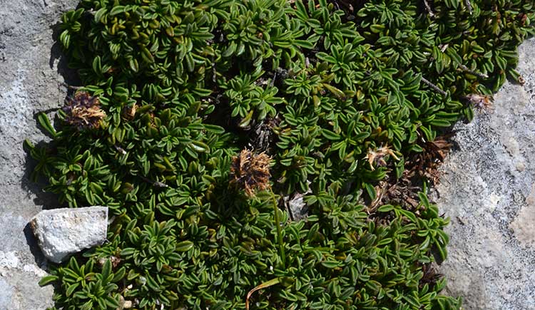 Globularia repens - Pyrenees (France). This mat-forming dwarf shrub prefers dry rocky places or rock crevices, usually on limestone.