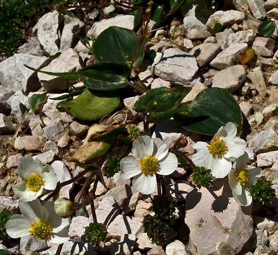 Ranunculus parnasifolius - This is a native of the alpine regions of Europe. The species is found screes and l crevices