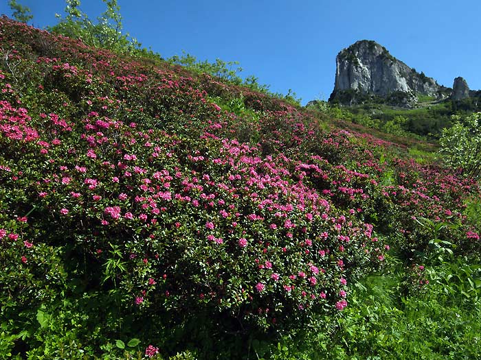 Rhododendron_ferrugineum – Maritimes Alps (Italy). This beautiful species is an evergreen shrub that grows just above the tree line in the Alps.